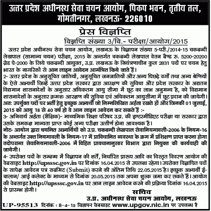 Download official Notification UP-95513 Dated 8-4-15 Vigyapn is also available on www.upgov.nic.in